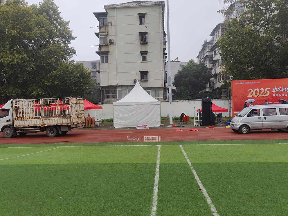 平頂山篷房租賃精準(zhǔn)把握中國農(nóng)業(yè)發(fā)展銀行湖北分行職工運(yùn)動會的活動特性,以尖頂篷房、折疊帳篷、桁架、折疊椅、道旗等物料,通過科學(xué)布局為運(yùn)動會打造出“功能清晰、氛圍熱烈、服務(wù)周全”的場地空間,助力活動有序開展。 平頂山篷房租賃巧妙運(yùn)用色彩與造型的搭配,讓篷房成為運(yùn)動會現(xiàn)場的視覺亮點(diǎn)。白色尖頂篷房選用高密度PVC篷布,單頂直徑5米、高度4.5米,造型輕盈雅致,主要分布在場地核心區(qū)域。紅色折疊帳篷則采用醒目亮眼的紅色牛津布頂篷,3米×3米的規(guī)格靈活便捷。 桁架、折疊椅、道旗等物料的協(xié)同配合,為運(yùn)動會提供了全方位的功能支撐。桁架搭建在運(yùn)動會場地中心,表面覆蓋印有“中國農(nóng)業(yè)發(fā)展銀行湖北分行職工運(yùn)動會”字樣的噴繪布。折疊椅輕便實(shí)用,布置在白色尖頂篷房內(nèi)的休息區(qū)與賽事觀禮區(qū)。道旗則沿運(yùn)動場周邊道路兩側(cè)整齊排列,印有農(nóng)發(fā)行l(wèi)ogo,3.5米的高度在風(fēng)中舒展,形成引導(dǎo)人流、烘托氛圍的“動態(tài)風(fēng)景線”。 平頂山篷房租賃為中國農(nóng)業(yè)發(fā)展銀行湖北分行職工運(yùn)動會打造了一套全方位的布場方案。這套方案既滿足了運(yùn)動會對功能分區(qū)、氛圍營造的需求,又充分考慮了職工的參與體驗(yàn),讓運(yùn)動會在熱烈有序的氛圍中展現(xiàn)團(tuán)隊(duì)凝聚力。