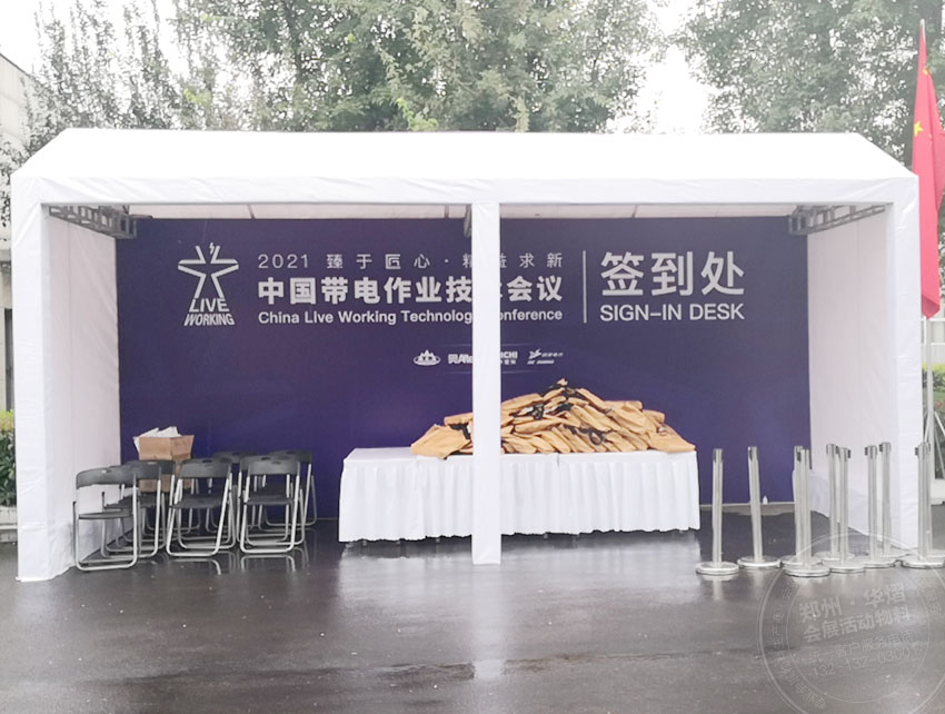華熠鄭州篷房租賃公司以十多年的戶外搭建經(jīng)驗(yàn),此次會(huì)議活動(dòng)僅用了一天之內(nèi)的時(shí)間就能把現(xiàn)場(chǎng)搭建完畢,省時(shí)省心又省力,更主要的是方便快捷,能夠給主辦方減少不必要的成本輸出,更好的能夠簡(jiǎn)單而又不失內(nèi)涵的體現(xiàn)在參會(huì)人員的面前。更好的完成中國(guó)帶電作業(yè)技術(shù)會(huì)議精彩開(kāi)展。