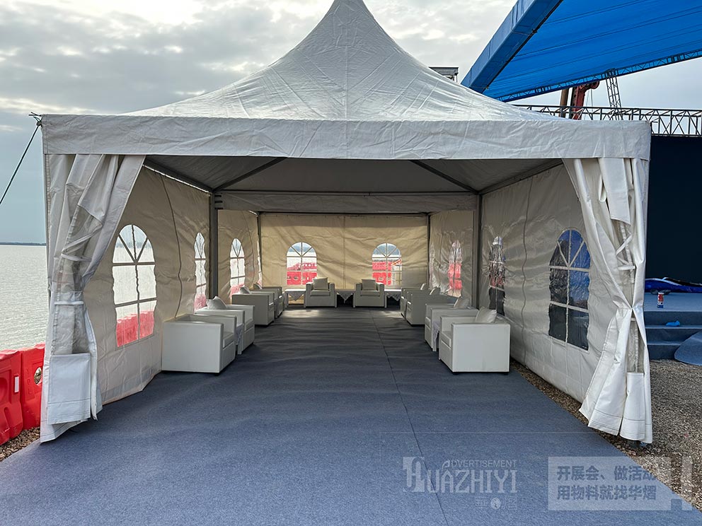 開工休息尖頂方形篷房為什么如此特別?現(xiàn)在市面上有很多不同風(fēng)格的篷房,其中有一種叫做尖頂方形篷房,如圖就可以看到它的外形,頂部是尖尖的,內(nèi)部可以擺放休息沙發(fā),四周圍布帶有透明窗戶可以將自然光線投入篷房內(nèi)部,地上鋪裝有干凈整潔的地毯,就在戶外搭建出了一個(gè)臨時(shí)的開工休息尖頂方形篷房。如此特別,這是為什么呢?今天華之熠篷房廠家就給您介紹下這種類型篷房的特點(diǎn)。