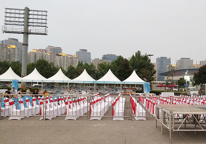 他們使用鄭州尖頂篷房租賃出租是有原因的,據(jù)了解這種建筑是裝配式建筑 ,鄭州尖頂篷房租賃出租 鋁合金框架 和PVC 篷布組裝而成。 它可以很快建造和拆除 。 以此次會(huì)展中心中使用的100 多塊 5*5尖頂篷房為例 , 只用了一天 的時(shí)間 就基本 完成了搭建 ,難以想象 。而且 ,不會(huì)對(duì)地面造成任何傷害 ,下端有三角腳,只能放在地上 , 遇到 大風(fēng) ,壓上軸承 就好 。鄭州華之熠尖頂篷房租賃出租內(nèi)部懸掛頂簾,鋪設(shè)地板和地毯 , 安裝燈具 、空調(diào)等設(shè)備 ,給人一種 舒適的感覺(jué) ,讓人感覺(jué)和傳統(tǒng) 酒店的房子沒(méi)有什么不同。 在鄭州,尖頂篷房租賃出租為什么會(huì)出現(xiàn)在各個(gè)活動(dòng)現(xiàn)場(chǎng),簡(jiǎn)而言之 , 它們被使用 ,當(dāng)然 ,有的是休息 ,有的是商家做生意 ,有的是堆材料......一系列活動(dòng)和適用場(chǎng)合。