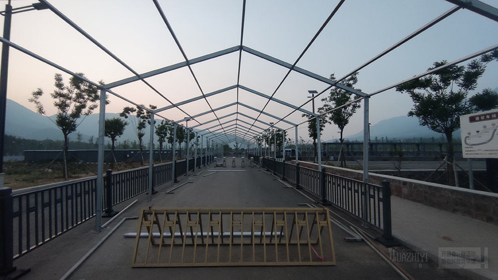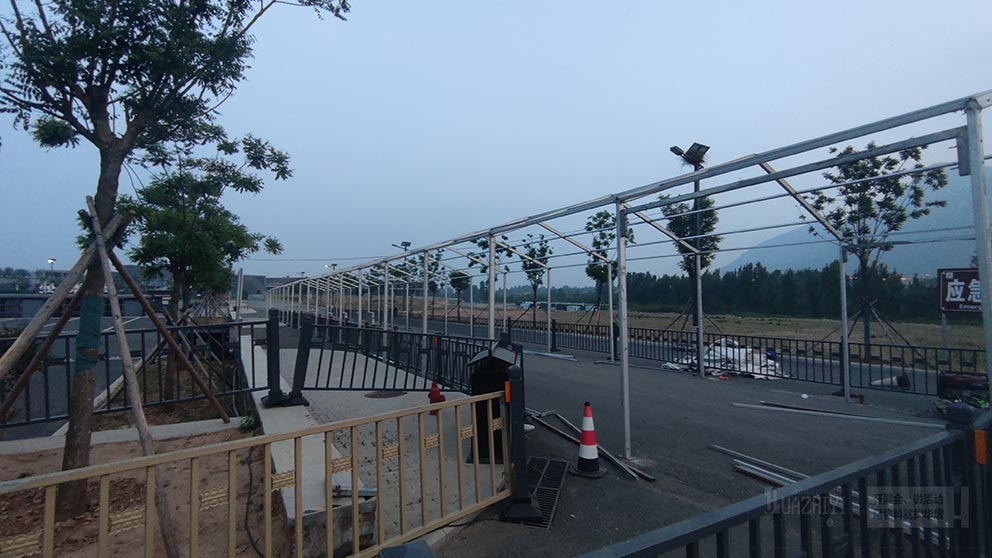 少林寺新停車場安檢篷房由鄭州篷房租賃廠家負責(zé)搭建