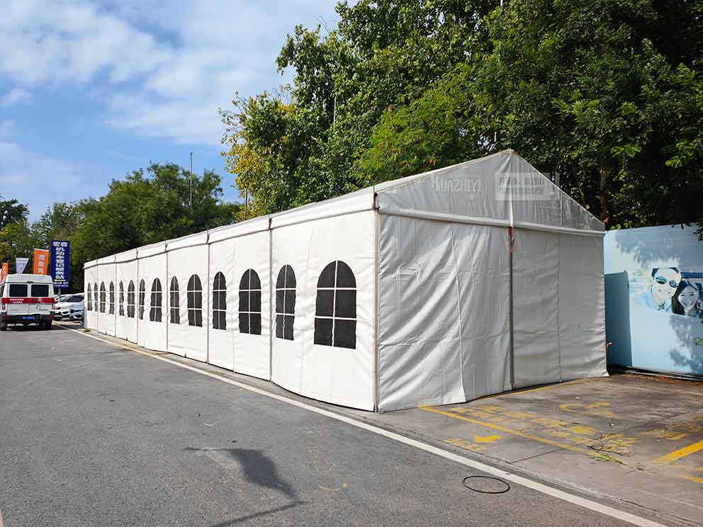 華熠篷房租賃公司憑借豐富的搭建經(jīng)驗(yàn)和專業(yè)的施工團(tuán)隊(duì),在短時(shí)間內(nèi)完成了這座臨時(shí)展廳篷房的搭建工作。我們不僅注重篷房的穩(wěn)固性和安全性,更在細(xì)節(jié)處理上精益求精,確保每一個(gè)細(xì)節(jié)都能達(dá)到更佳效果。