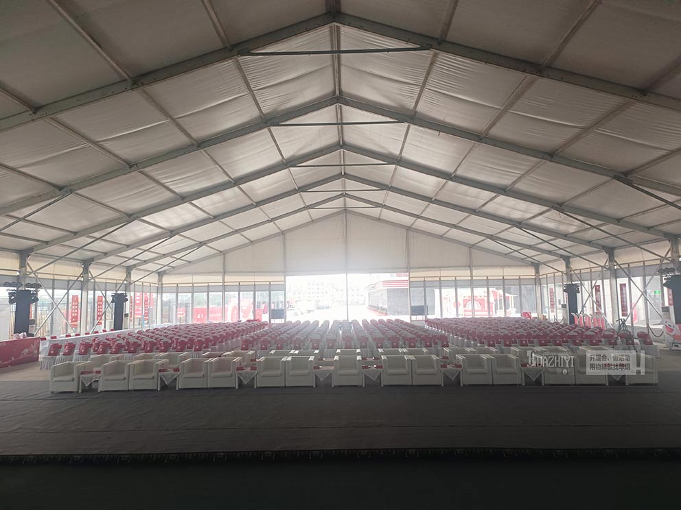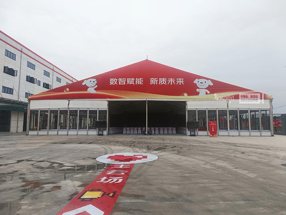 篷房?jī)?nèi),各項(xiàng)開園活動(dòng)井然有序地進(jìn)行。高科技展品、智能物流設(shè)備以及京東文化的精彩展示,讓每一位來賓都能深刻感受到智慧物流的魅力與未來。而鄭州玻璃篷房作為這一切的見證者,其高質(zhì)量的搭建與精心的設(shè)計(jì),無疑為活動(dòng)增添了更多的光彩與亮點(diǎn)。