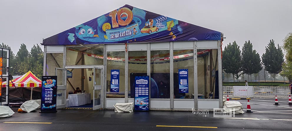 活動(dòng)現(xiàn)場(chǎng),一座寬敞明亮的篷房拔地而起,不僅有效抵御了夏日炎炎的烈日,更為試駕活動(dòng)營(yíng)造了一個(gè)既專(zhuān)業(yè)又舒適的環(huán)境。篷房?jī)?nèi)部分區(qū)明確,既有展示區(qū)讓嘉賓近距離感受新車(chē)魅力,也有試駕體驗(yàn)區(qū)讓參與者親身駕馭,感受速度與激情。此外,篷房的外墻裝飾與汽車(chē)之家的品牌形象完美融合,彰顯出品牌的高端與格調(diào)。