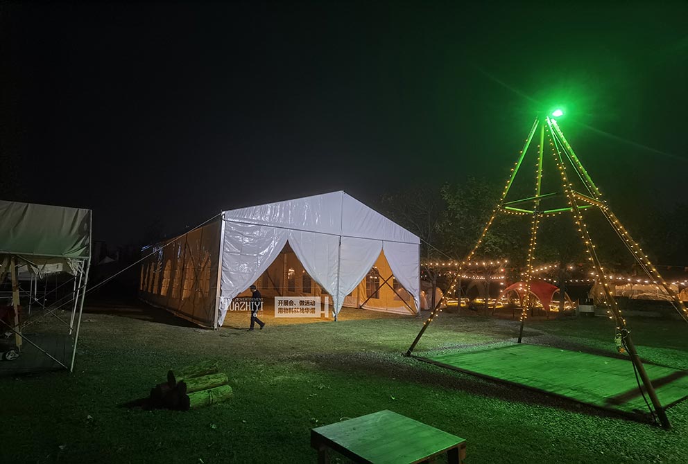 在篷房的搭建過程中,華熠注重與露營地的自然環(huán)境相融合。我們巧妙地利用地形地貌,將篷房點綴在綠樹叢中,與周圍的自然風光相得益彰。同時,篷房內還配備了完善的設施,如床鋪、桌椅、照明等,讓露營者在享受自然美景的同時,也能感受到家的溫馨與便利。