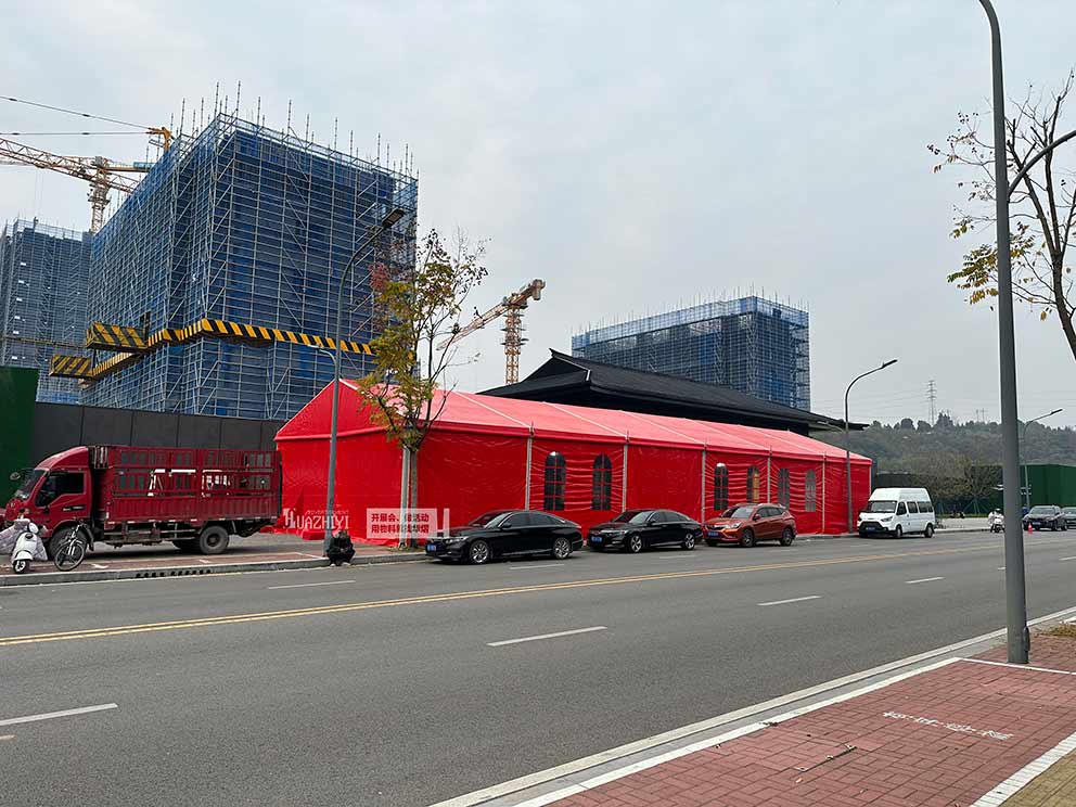 首先,選址要合理。地產(chǎn)開盤篷房的搭建應(yīng)選擇平坦、堅實且無遮擋物的場地,確保篷房能夠穩(wěn)固搭建,避免因地質(zhì)條件不良或風力過大導(dǎo)致的安全問題。同時,要考慮場地的交通便捷性,確保人員和車輛的順利出入。