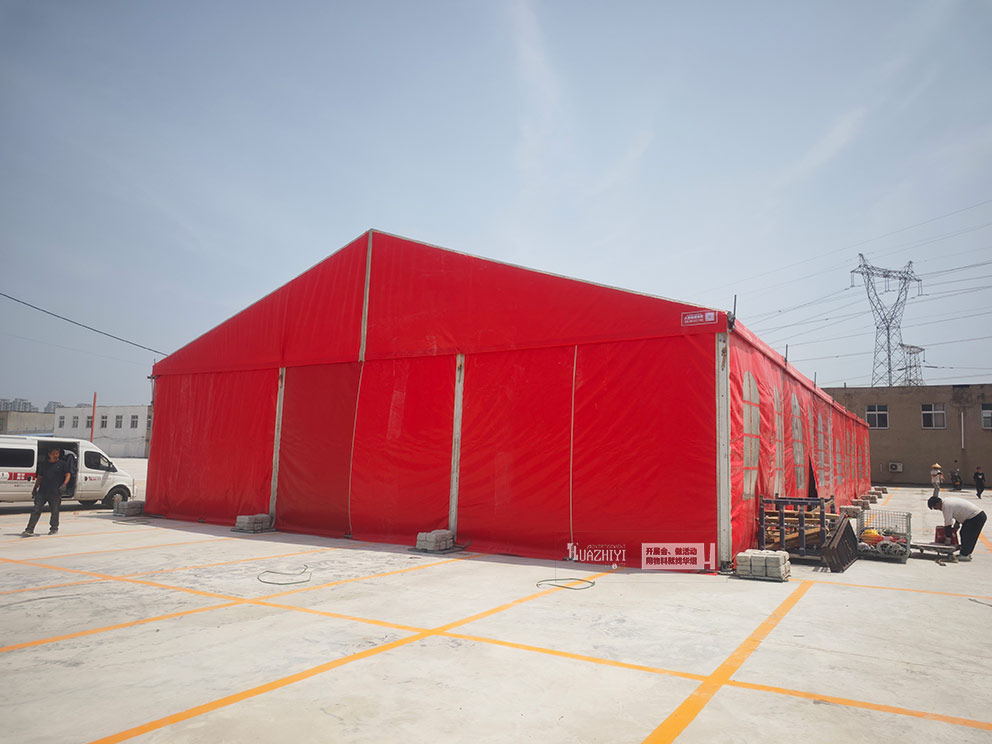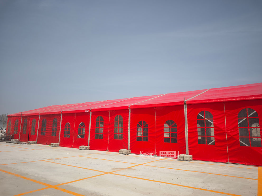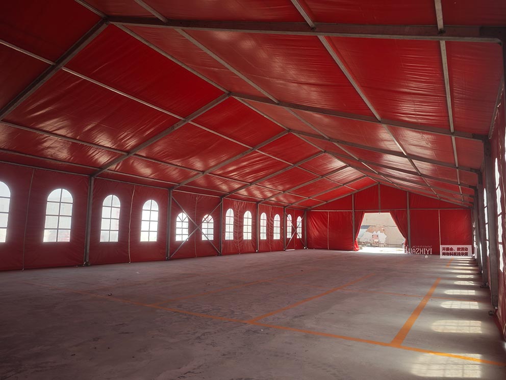 婚慶篷房是夏季婚禮市場(chǎng)的熱門(mén)之選。以紅色篷房為例,其鮮艷色彩契合傳統(tǒng)婚慶氛圍,鋁合金框架搭配雙層PVC篷布。內(nèi)部可靈活配置水晶吊燈、紗幔、地毯等裝飾,結(jié)合空調(diào)系統(tǒng),打造舒適浪漫的婚禮空間。鄭州華熠公司曾為多場(chǎng)戶外婚禮提供此類篷房,滿足新人對(duì)時(shí)效與美學(xué)的雙重需求。