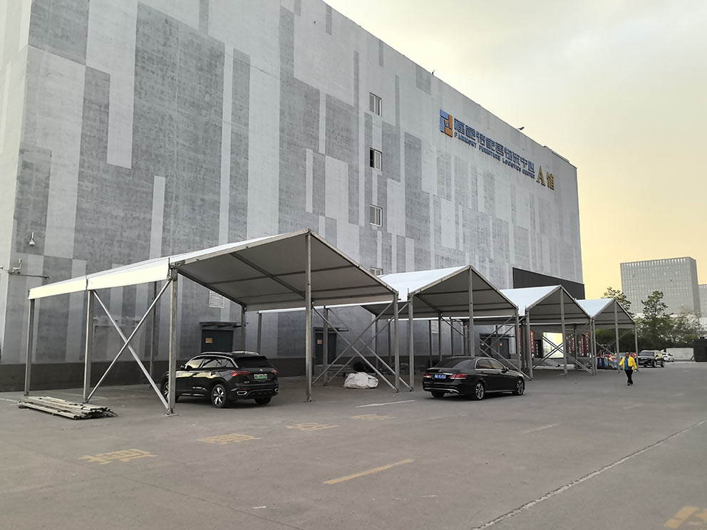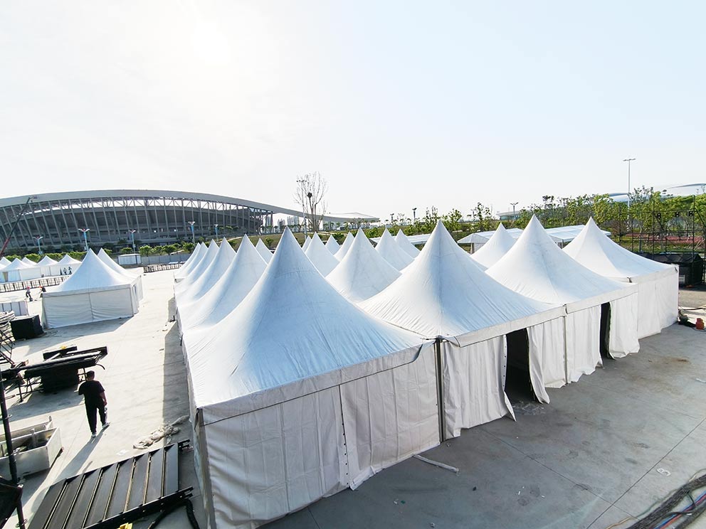 篷房的許多部件在倉(cāng)庫(kù)就已完成預(yù)裝配:斜撐與橫梁的角度提前校準(zhǔn),篷布上的卡扣位置預(yù)先固定,甚至連防風(fēng)繩的長(zhǎng)度都按場(chǎng)地類型分檔備好。現(xiàn)場(chǎng)搭建時(shí),工人只需將預(yù)裝好的部件整體對(duì)接,省去大量調(diào)試時(shí)間。