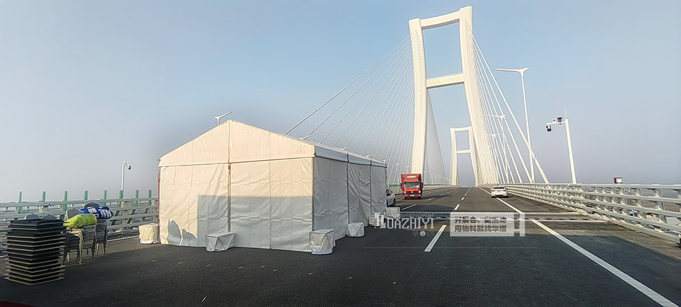 山東菏澤篷房出租憑借優(yōu)質(zhì)的白色人字形篷房、專業(yè)的搭建技術(shù)與貼心的服務(wù),為2025年菏澤高速集中通車儀式打造了兼具莊重感與實(shí)用性的場(chǎng)地空間。