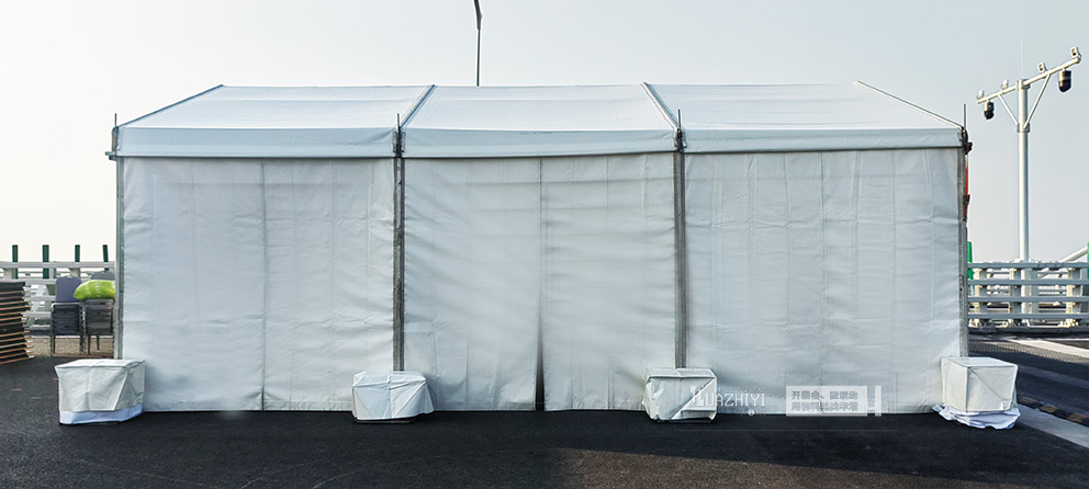 山東菏澤篷房出租精準(zhǔn)把握高速通車儀式的莊重氛圍,精選白色人字形篷房作為核心搭建物料。純凈的白色象征著嚴(yán)謹(jǐn)與純粹,與通車儀式的正式格調(diào)高度契合,簡約流暢的人字形線條盡顯大氣,既能凸顯儀式的權(quán)威性,又不會(huì)喧賓奪主。同時(shí),白色篷布采用雙層PVC涂層材質(zhì),具備優(yōu)異的防雨、防曬、抗紫外線性能,可從容應(yīng)對(duì)戶外多變天氣,為嘉賓接待、流程舉辦提供穩(wěn)定的空間保障。