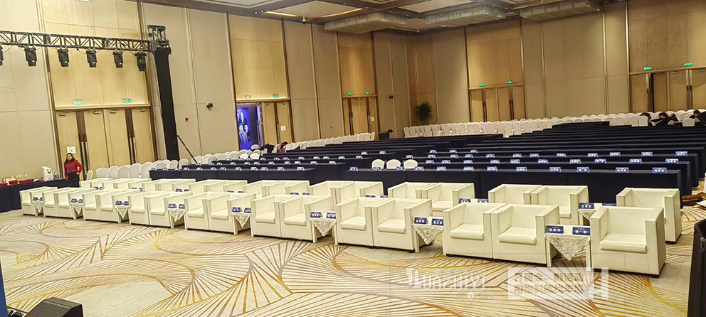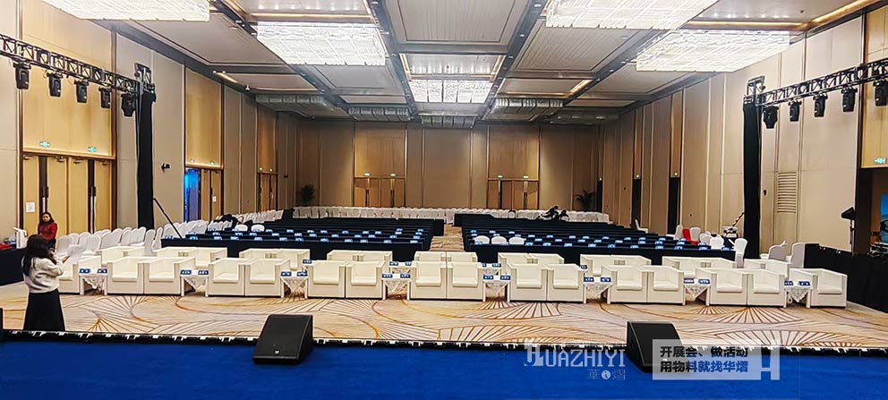 以質(zhì)感贏信任,以專業(yè)助圓滿。開封沙發(fā)出租用白色單人皮質(zhì)沙發(fā)與茶幾,為高新假日酒店活動(dòng)打造了高端雅致的休憩空間,既彰顯了酒店的高端定位,又提升了嘉賓的活動(dòng)體驗(yàn)。